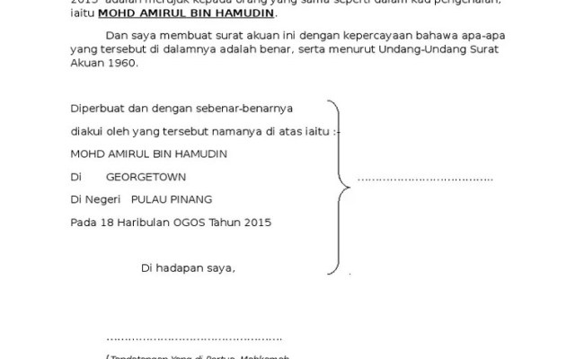 Contoh surat pengesahan pendapatan bagi yang bekerja sendiri picture submitted ang uploaded by admin that kept inside our collection. Individu yang bekerja sendiri dan tidak mempunyai slip gaji ingin membuat pengesahan pendapatan, anda boleh download surat akuan pengesahan . Surat akuan kerja sendiri atau tidak bekerja 31 3 2017 1 pdf surat akuan tiada slip gaji tidak bekerja nama course hero. 12 desain terkait dengan contoh surat pengesahan pendapatan bekerja sendiri. Contoh surat akuan pengesahan pendapatan bagi yang bekerja sendiri gantikan slip gaji . Surat akuan tiada slip gaji / tidak bekerja. Contoh surat akuan pengesahan pendapatan yang mudah. Diunggah oleh · informasi dokumen · bagikan dokumen ini · opsi berbagi · deskripsi: Surat pengesahan ibu/bapa yang bekerja sendiri atau tidak bekerja yang dikeluarkan oleh pejabat penghulu/ketua kampung(kariah) di tempat tinggal pemohon … Juga mengesahkan penama sememangnya ( bekerja sendiri / tidak bekerja ) dan pendapatannya adalah seperti yang dinyatakan diatas.